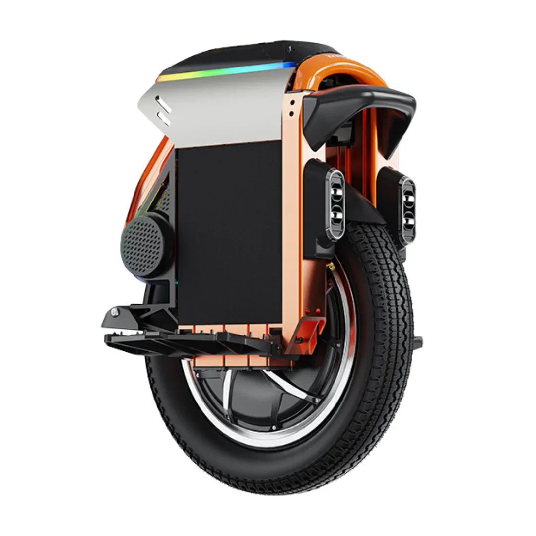 Seien Sie unter allen Bedingungen sichtbar und sicher. Das Einrad ist mit einem intelligenten, 360° sichtbaren LED-Beleuchtungssystem ausgestattet. Es umfasst leistungsstarke und verstellbare Scheinwerfer (4 x 5W) sowie farbenfrohe RGB-Umgebungslichter, die Sie nach Ihren Wünschen anpassen können. Mit 16,8 Millionen Farben sorgen Sie für ein einzigartiges Aussehen und maximale Sichtbarkeit bei Nacht.