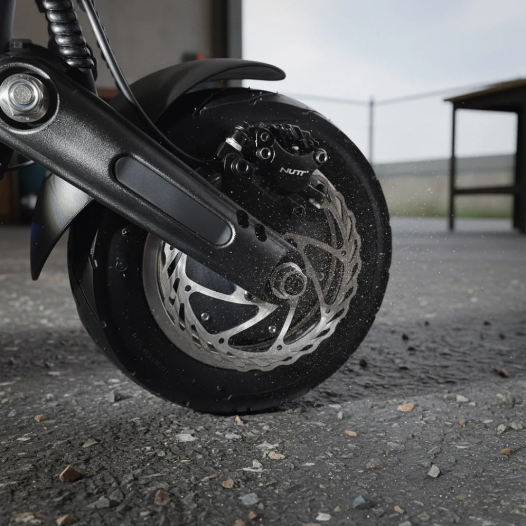 Bei einer solchen Leistung steht die Sicherheit an erster Stelle. Deshalb ist der Thunder 2 mit einem erstklassigen hydraulischen NUTT-Bremssystem mit großen 160-mm-Scheiben ausgestattet. Die physische Bremsung wird durch ein patentiertes, leistungsstarkes magnetisches und elektrisches Bremssystem (EBS) mit ABS unterstützt, das eine außergewöhnliche Bremskraft und vollständige Kontrolle in allen Situationen gewährleistet.