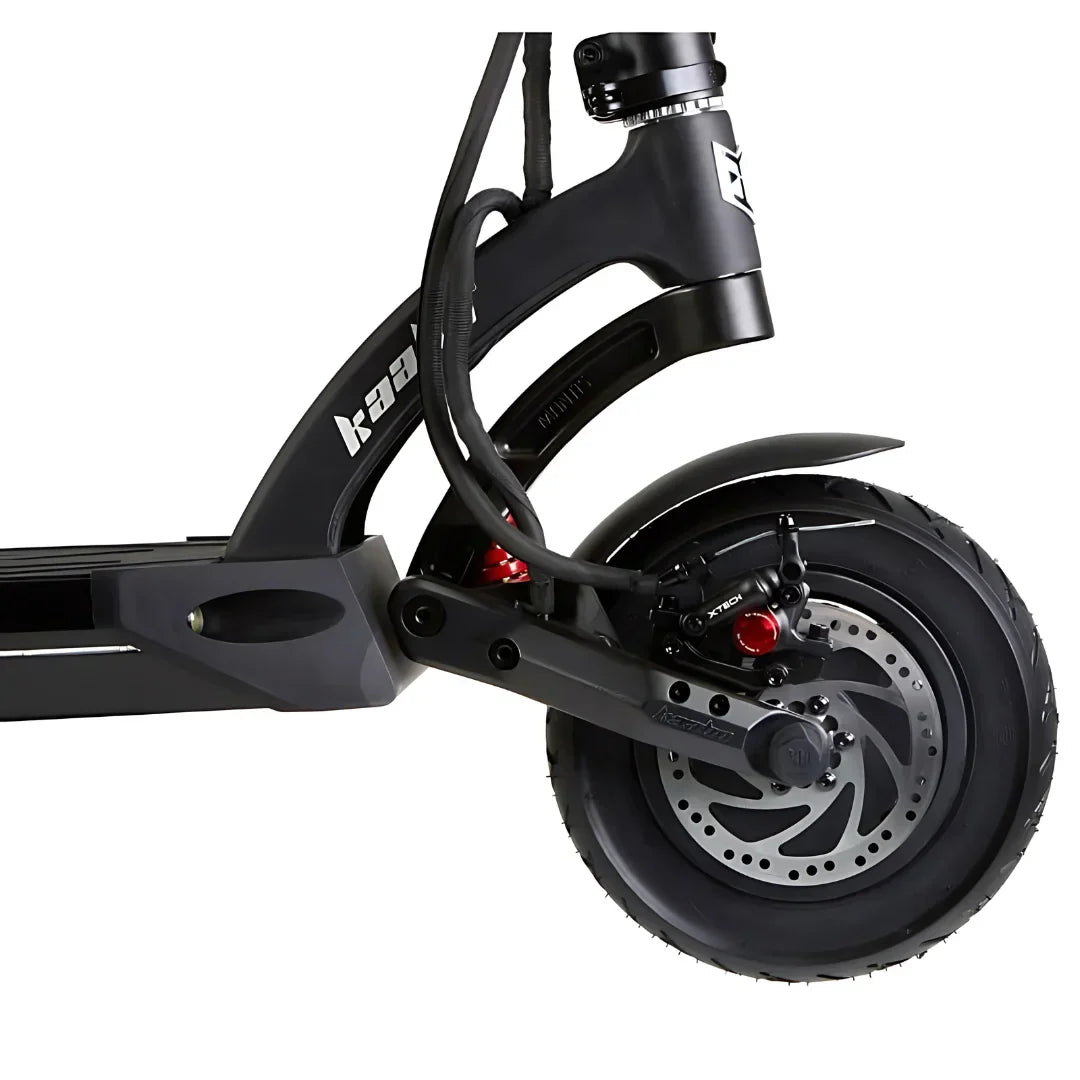 Der Kaabo Mantis verfügt über eines der besten Federungssysteme seiner Klasse. Die markante C-TYPE-Federung erbringt auf allen Oberflächen hervorragende Leistungen – vom städtischen Asphalt bis hin zu Schotterwegen. Sie ist fest genug für Stabilität bei höheren Geschwindigkeiten und dennoch flexibel genug, um Unebenheiten effektiv zu absorbieren. Die großen 10-Zoll-Luftreifen sorgen für zusätzlichen Komfort.