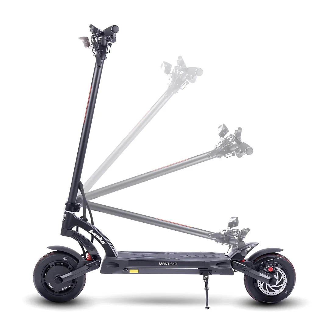 Der Mantis ist ein praxiserprobtes Modell, das mehrfach aktualisiert wurde und für eine langfristige Nutzung bei minimalem Wartungsaufwand konzipiert ist. Trotz seiner außergewöhnlichen Kraft und Robustheit wiegt er nur etwa 27 kg, was ihn zu einem der leichteren Roller in seiner Klasse macht. Der verbesserte und zuverlässige Klappmechanismus ermöglicht es Ihnen, ihn in Sekundenschnelle zusammenzuklappen und einfach im Kofferraum eines Autos zu verstauen.