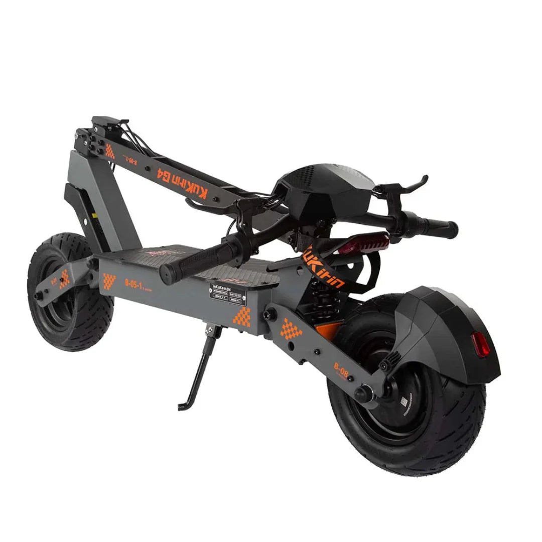 Der KuKirin G4 ist für Komfort auf jedem Untergrund gebaut. Er ist mit einem professionellen Vierpunkt-Federungssystem ausgestattet. Die dualen Stoßdämpfer vorne und hinten absorbieren Stöße und Vibrationen von unebenem Gelände effektiv und sorgen für eine außergewöhnlich sanfte und stabile Fahrt, egal wohin Ihre Reise Sie führt.