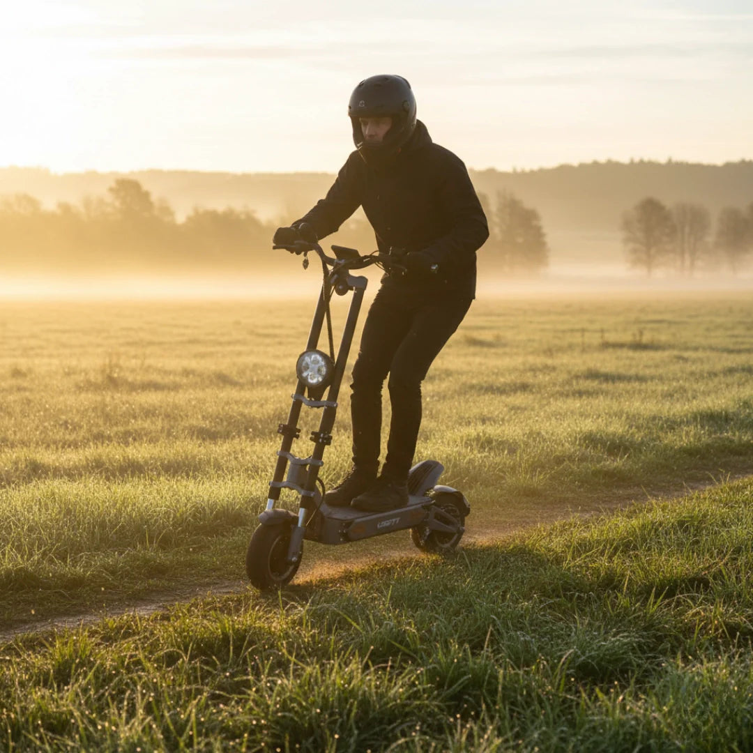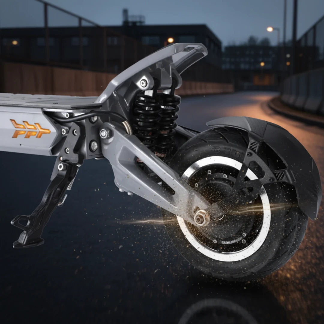 Erleben Sie unvergleichliche Kraft mit zwei bürstenlosen Motoren, jeder mit einer Leistung von 1500W, was eine beeindruckende kombinierte Nennleistung von 3000W ergibt. Für jene Momente, in denen Sie noch mehr benötigen, gibt es den „Turbo Boost“-Modus, der für kurze Zeit zusätzliche Leistung für eine unglaubliche Beschleunigung freisetzt. Dieses Biest bezwingt mühelos Steigungen von bis zu 45°.