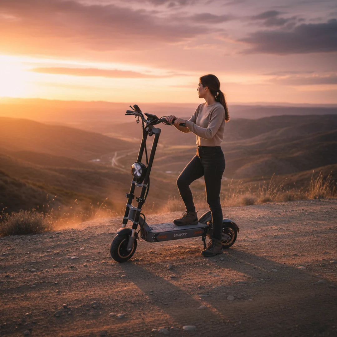 Der Elektroroller Vsett 11+ ist eine kompromisslose Wahl für die anspruchsvollsten Nutzer und echte Adrenalin-Enthusiasten. Er wurde für diejenigen entwickelt, die den absoluten Gipfel der Leistung, eine außergewöhnliche Reichweite für längste Abenteuer und Technologie suchen, die Sicherheit auch unter höchsten Belastungen gewährleistet. Wenn Sie das Beste wollen, was die Welt der Elektroroller zu bieten hat, ist der Vsett 11+ die richtige Entscheidung für Sie.