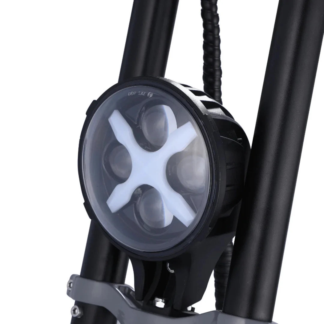 Seien Sie unter allen Bedingungen sichtbar und sicher. Der Roller ist mit einem beeindruckenden Beleuchtungssystem ausgestattet, das einen leistungsstarken LED-Frontscheinwerfer, Rückleuchten, blinkende Bremsleuchten und integrierte Blinker umfasst. Dieses umfassende System stellt sicher, dass Sie von allen Seiten gesehen werden, was die Sicherheit bei Nachtfahrten erheblich erhöht.