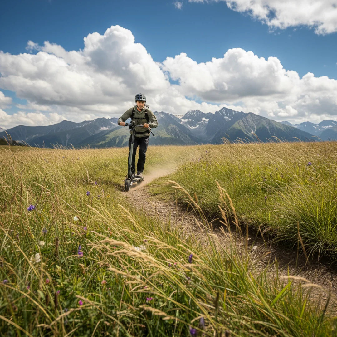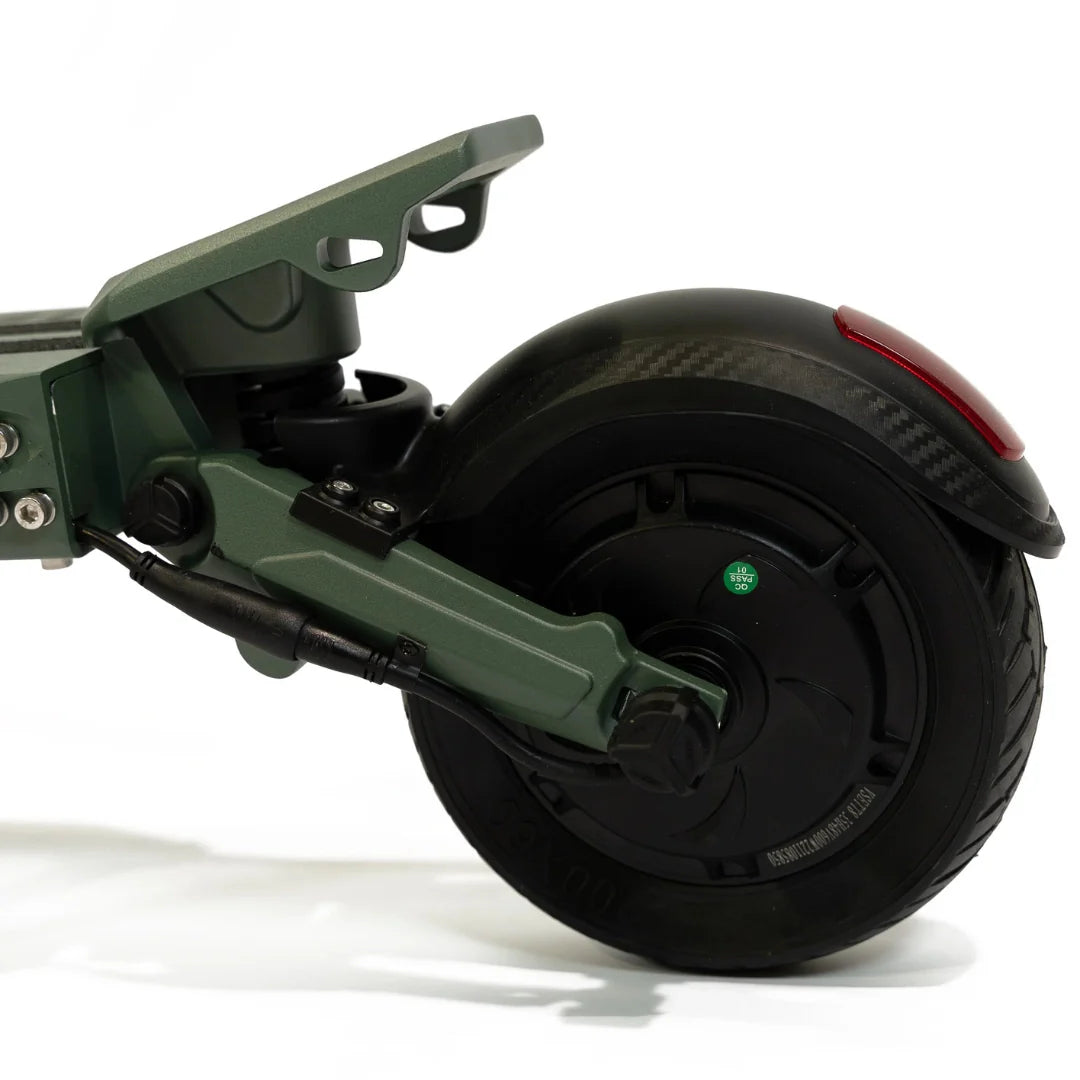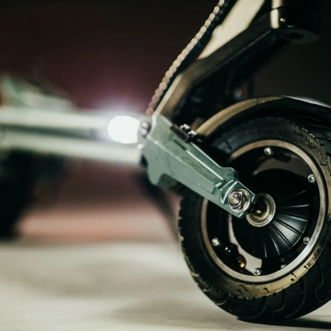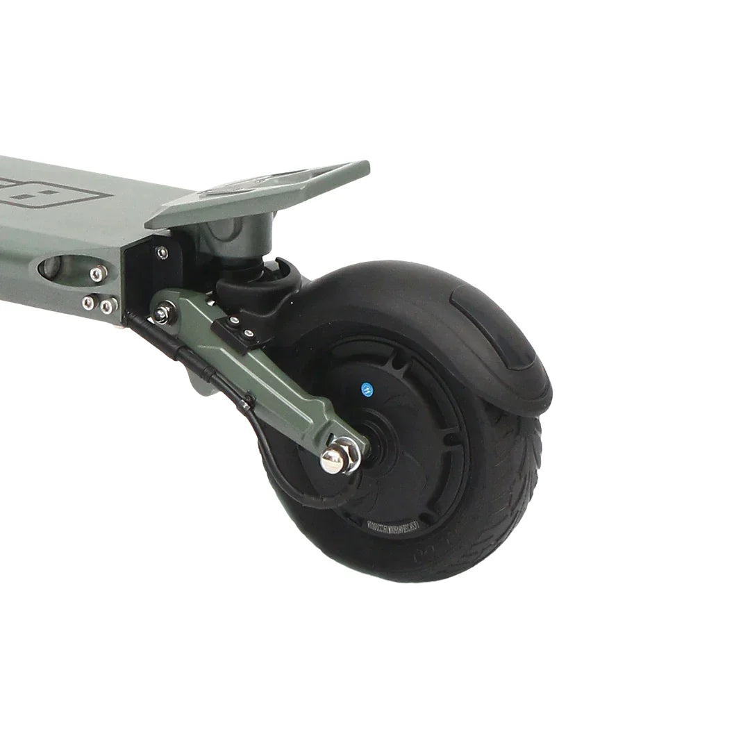 Eine durchdachte Kombination von Reifen bietet ein optimales Gleichgewicht zwischen Komfort und Praktikabilität. Der vordere 8,5-Zoll-Luftreifen absorbiert kleinere Unebenheiten hervorragend und trägt zu einer komfortableren Fahrt bei, während der hintere 8-Zoll-Vollgummireifen Langlebigkeit und Pannensicherheit gewährleistet.
