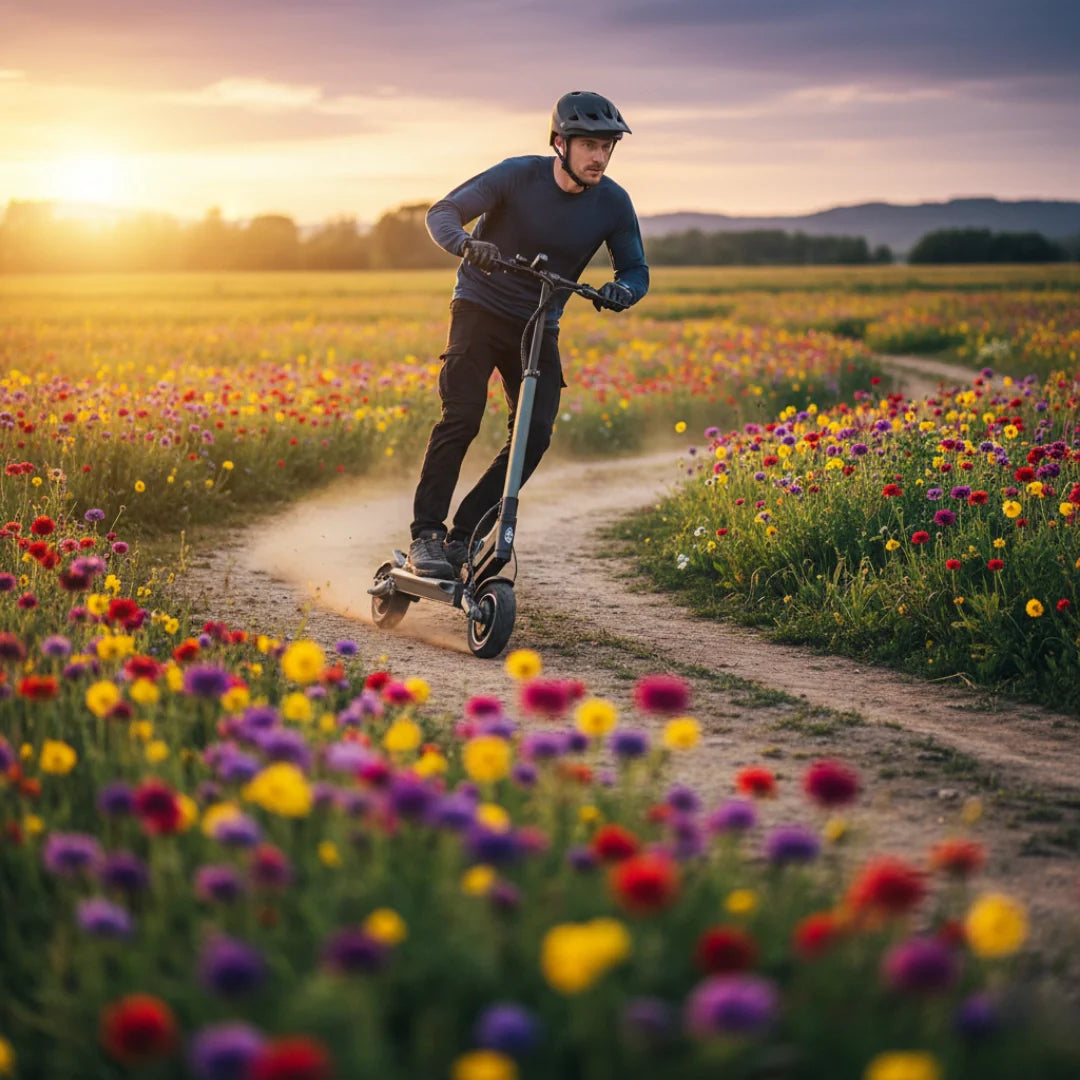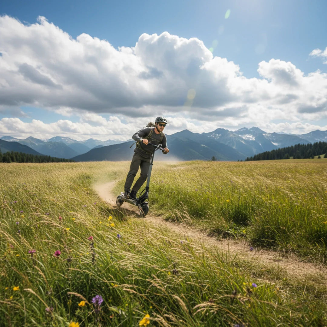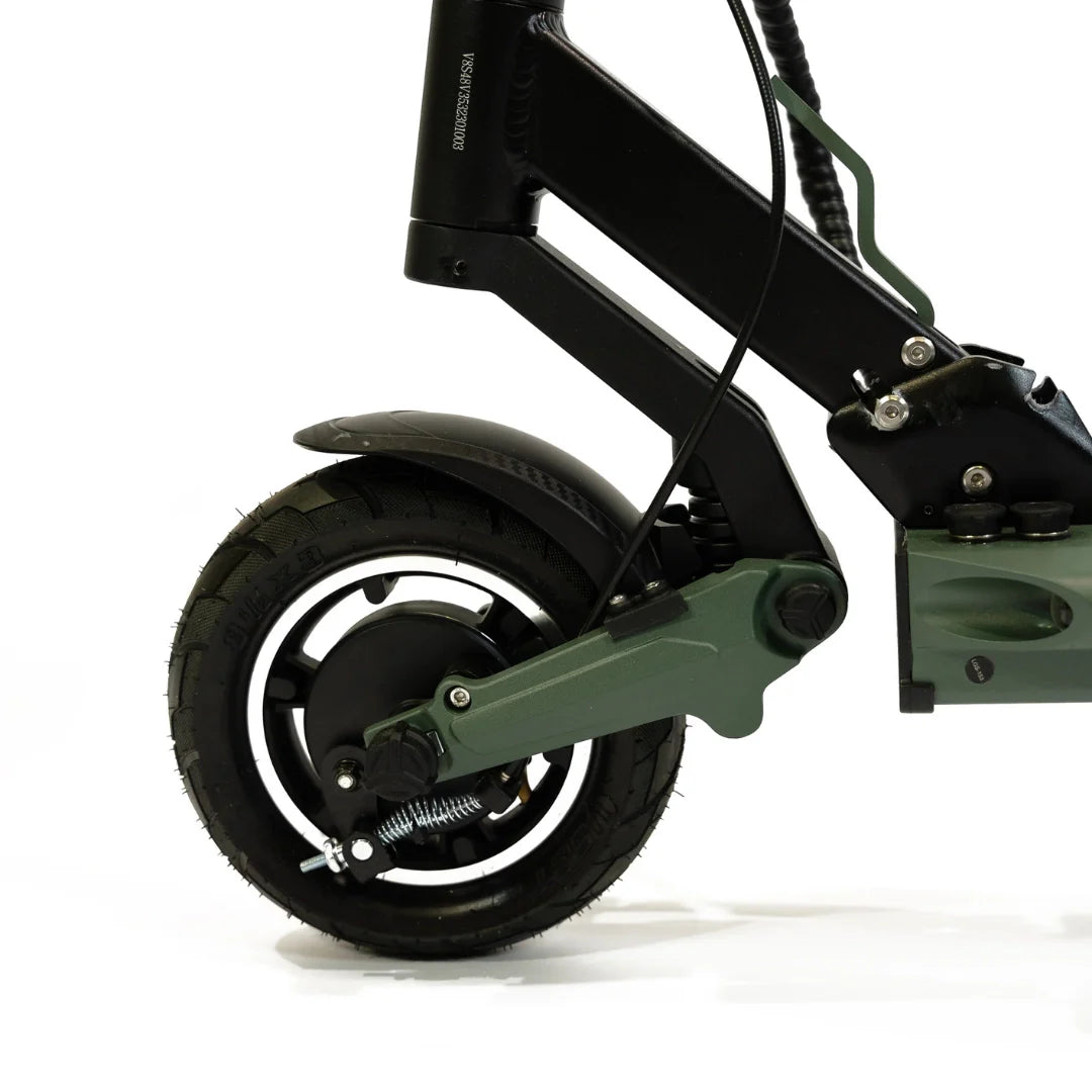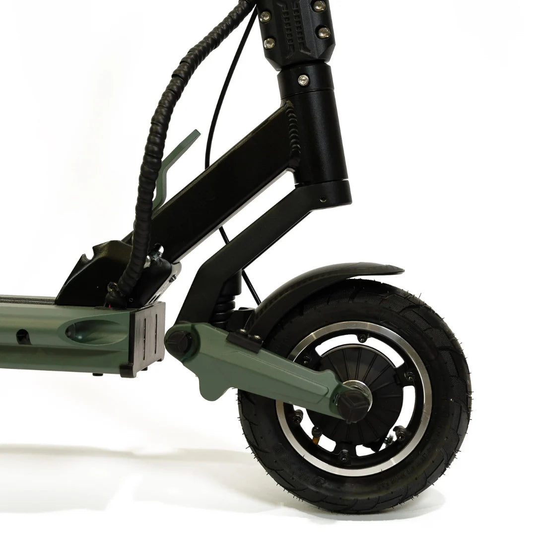Eine durchdachte Kombination von Reifen bietet ein optimales Gleichgewicht zwischen Komfort und Praktikabilität. Der vordere 8,5-Zoll-Luftreifen absorbiert kleinere Unebenheiten hervorragend und trägt zu einer komfortableren Fahrt bei, während der hintere 8-Zoll-Vollgummireifen Langlebigkeit und Pannensicherheit gewährleistet.
