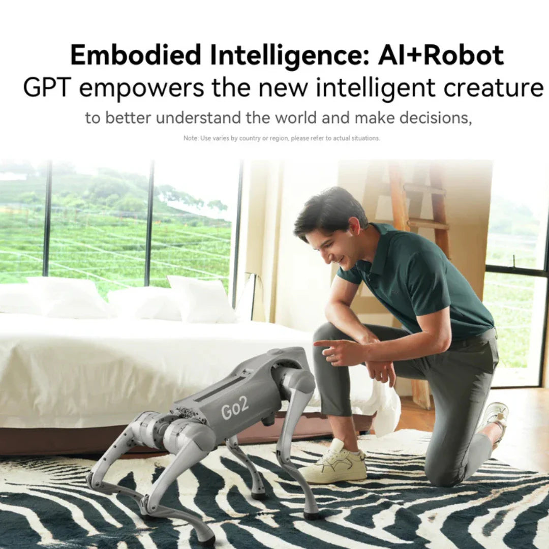Unitree Go2 nutzt die Leistung von großen Sprachmodellen (GPT) für ein besseres Verständnis der Welt. Mit Hilfe von „Embodied Intelligence“ folgt der Roboter nicht nur Befehlen, sondern kann die Absichten des Benutzers interpretieren und in unvorhersehbaren Situationen bessere Entscheidungen treffen. Dies ermöglicht eine natürlichere Interaktion und die Anpassung des Roboters an spezifische Benutzeranforderungen über die Applikation.
