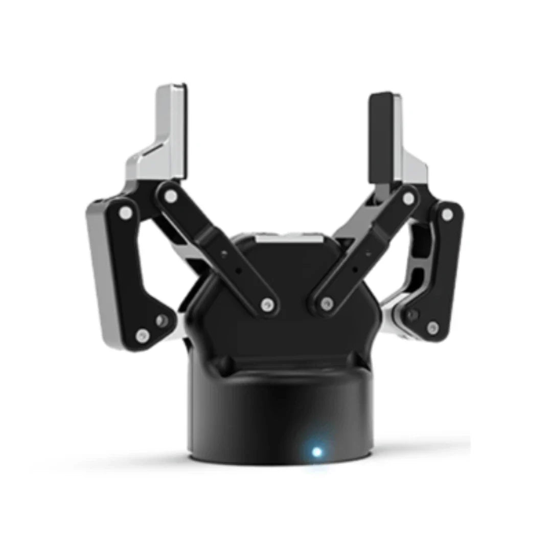 El extremo del brazo (brida) permite cambios rápidos de varios efectores, desde pinzas eléctricas y ventosas hasta destornilladores y cámaras. El brazo se comunica a través de una interfaz Ethernet fiable y utiliza RS485 para la comunicación interna. Se alimenta mediante una fuente estándar de 24V, lo que facilita la integración en los sistemas industriales existentes.
