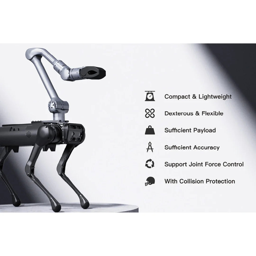 El Z1 no es solo un brazo estático; fue desarrollado específicamente para su integración en robots cuadrúpedos (como Unitree Aliengo y B1) y otros vehículos móviles (AGV/AMR). Con su diseño compacto e interfaz estandarizada, permite que los robots móviles no solo observen, sino que interactúen físicamente con el entorno: abriendo puertas, presionando botones o transportando carga en terrenos difíciles.