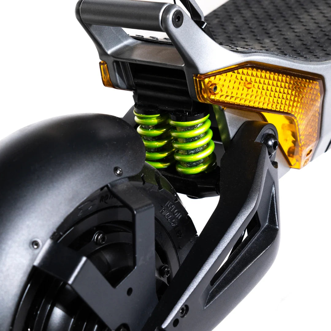 Los excelentes amortiguadores de horquilla en C delanteros y traseros garantizan una conducción cómoda en todos los terrenos. Este avanzado sistema de suspensión amortigua eficazmente las vibraciones y los impactos, mejorando su capacidad para superar casi cualquier obstáculo y proporcionando una experiencia excepcionalmente cómoda, incluso en rutas más largas y exigentes.