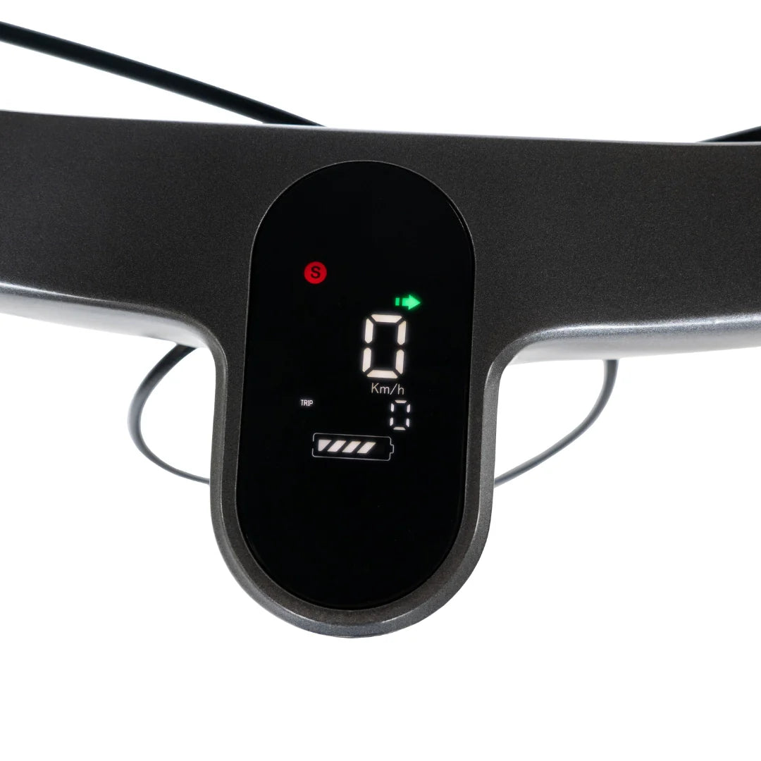 Toda la información de su trayecto está disponible en la clara pantalla LCD integrada, que muestra la velocidad, el estado de la batería y el modo de conducción. Conecte el patinete a la aplicación inteligente y personalice su estilo de conducción con multitud de ajustes, incluido el rendimiento del motor, y supervise todos los parámetros de su viaje.