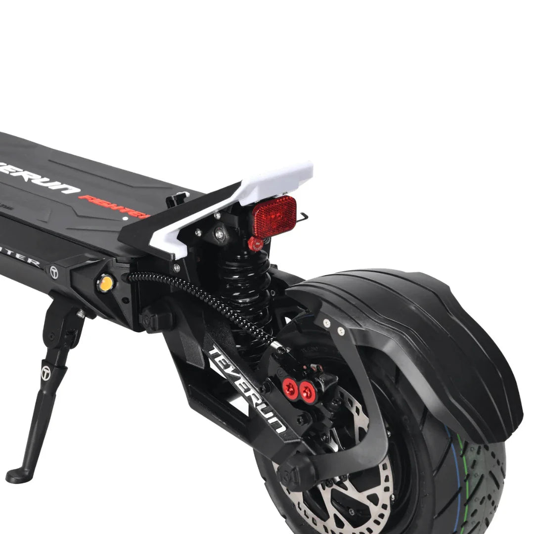 La sécurité est primordiale avec de telles performances. La Teverun Fighter 11+ utilise des freins à disque hydrauliques avancés à 4 pistons, offrant une surface de freinage 100 % plus grande par rapport aux freins standard. Cela garantit une force de freinage plus puissante, une distance de freinage 30 % plus courte et 50 % de surchauffe des freins en moins. Que vous descendiez une colline escarpée ou que vous deviez vous arrêter rapidement devant un obstacle, vous aurez un contrôle total.