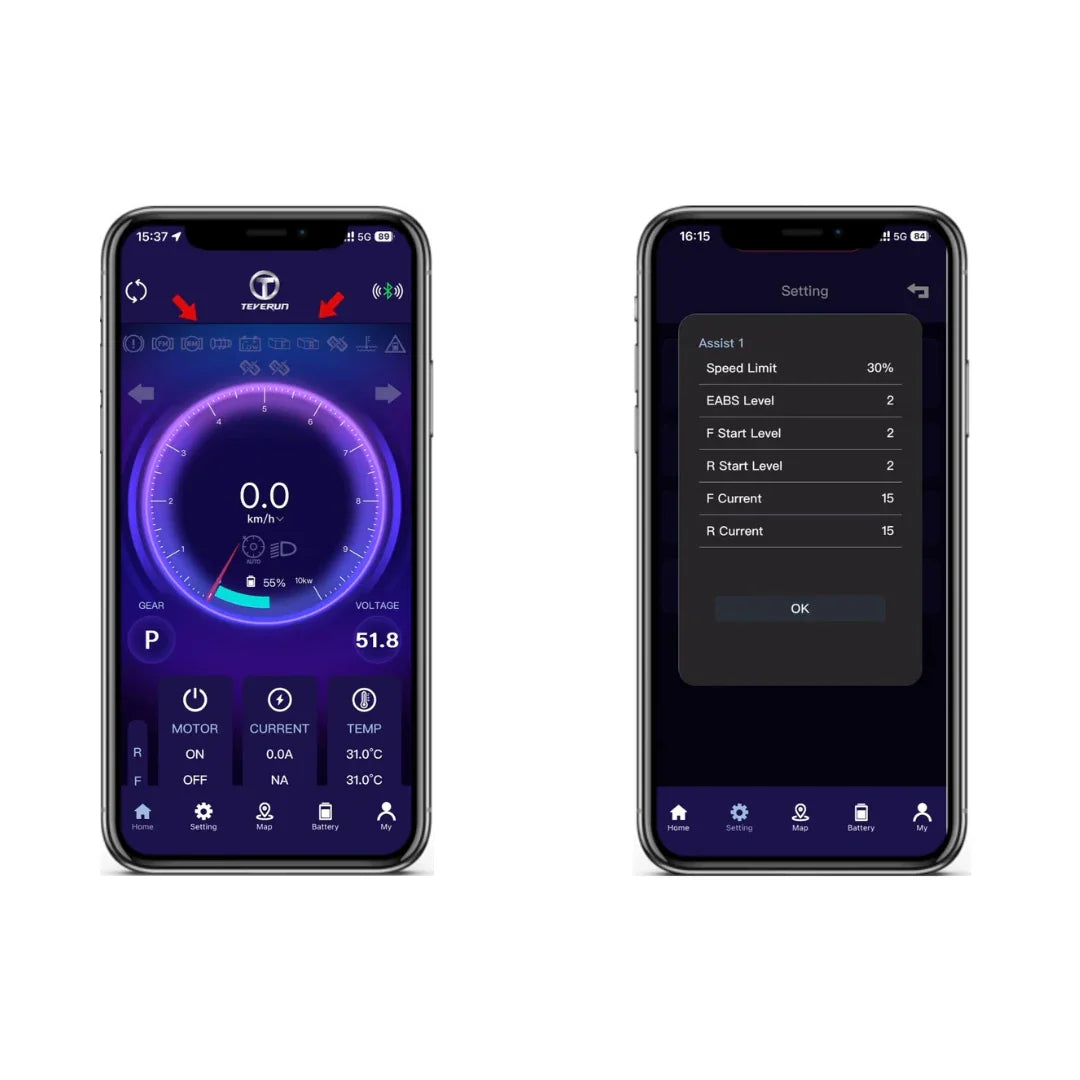 Prenez le contrôle total avec un écran TFT de 4 pouces et l'application TEVERUN APP 1.5. L'application permet un suivi GPS en temps réel, un diagnostic des pannes et le réglage des paramètres. Une caractéristique spéciale est le système d'éclairage TEVERUN Lumina, offrant plus de 1000 combinaisons de couleurs et s'adaptant automatiquement à la conduite (freinage, virage), augmentant votre visibilité et votre sécurité tout en donnant à la trottinette un look unique.