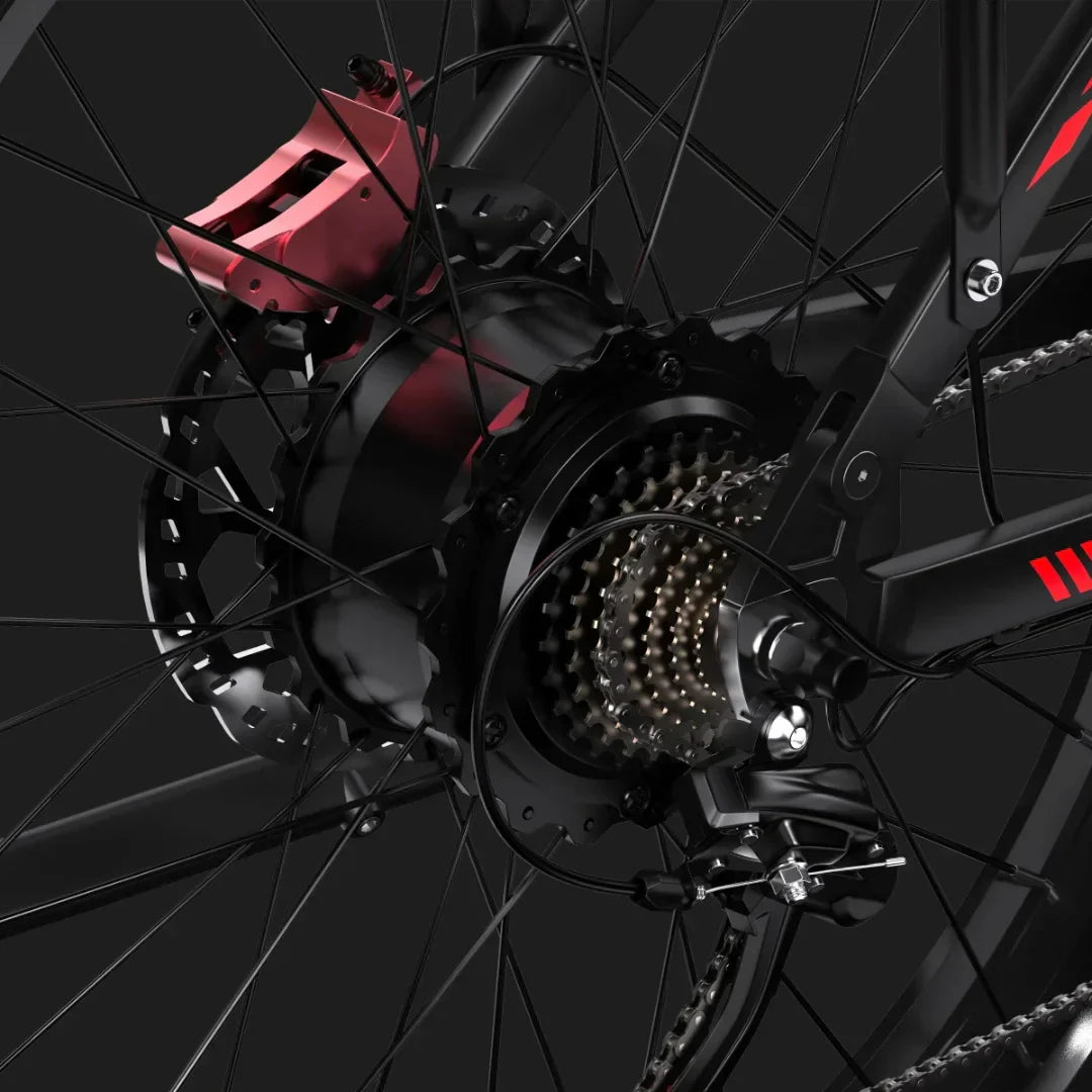 Terenske sposobnosti bicikla S26 osiguravaju široke Kenda 26x4.0 inča gume. Zbog svoje širine nude iznimno prianjanje, stabilnost i ublažavanje udaraca na različitim površinama kao što su pijesak, snijeg, blato ili šumske staze. Učinit će vašu vožnju sigurnom i samouvjerenom čak i pri većim brzinama u načinu rada s dvostrukim pogonom.