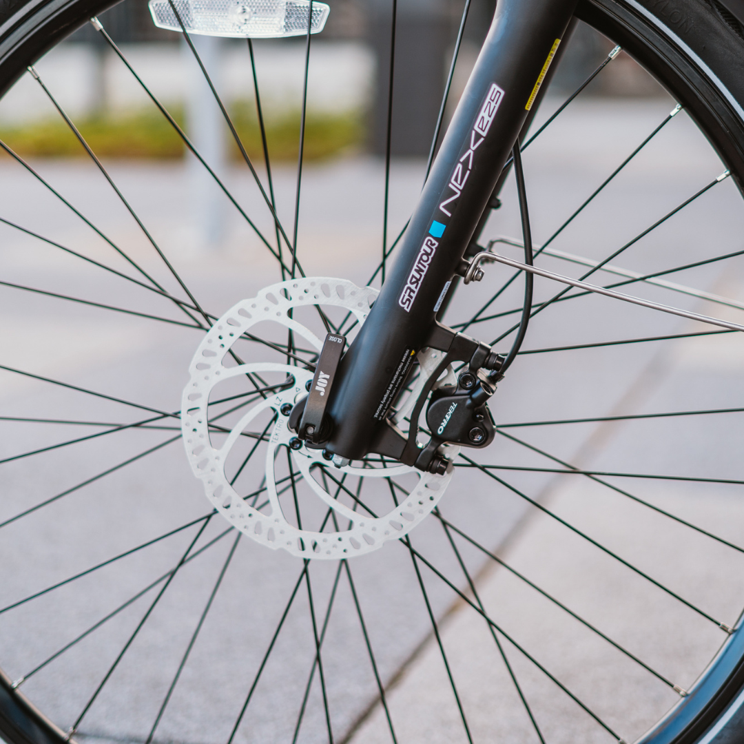 Za glatku i udobnu vožnju gradskim ulicama, prednja suspenzijska vilica SR Suntour NEX sa 75 mm hoda učinkovito apsorbira neravnine. Udobnost je poboljšana širokim Velo sjedalom, ergonomskim ručkama i podesivim nosačem upravljača, što omogućuje savršeno pozicioniranje za najopušteniju i najugodniju moguću vožnju.