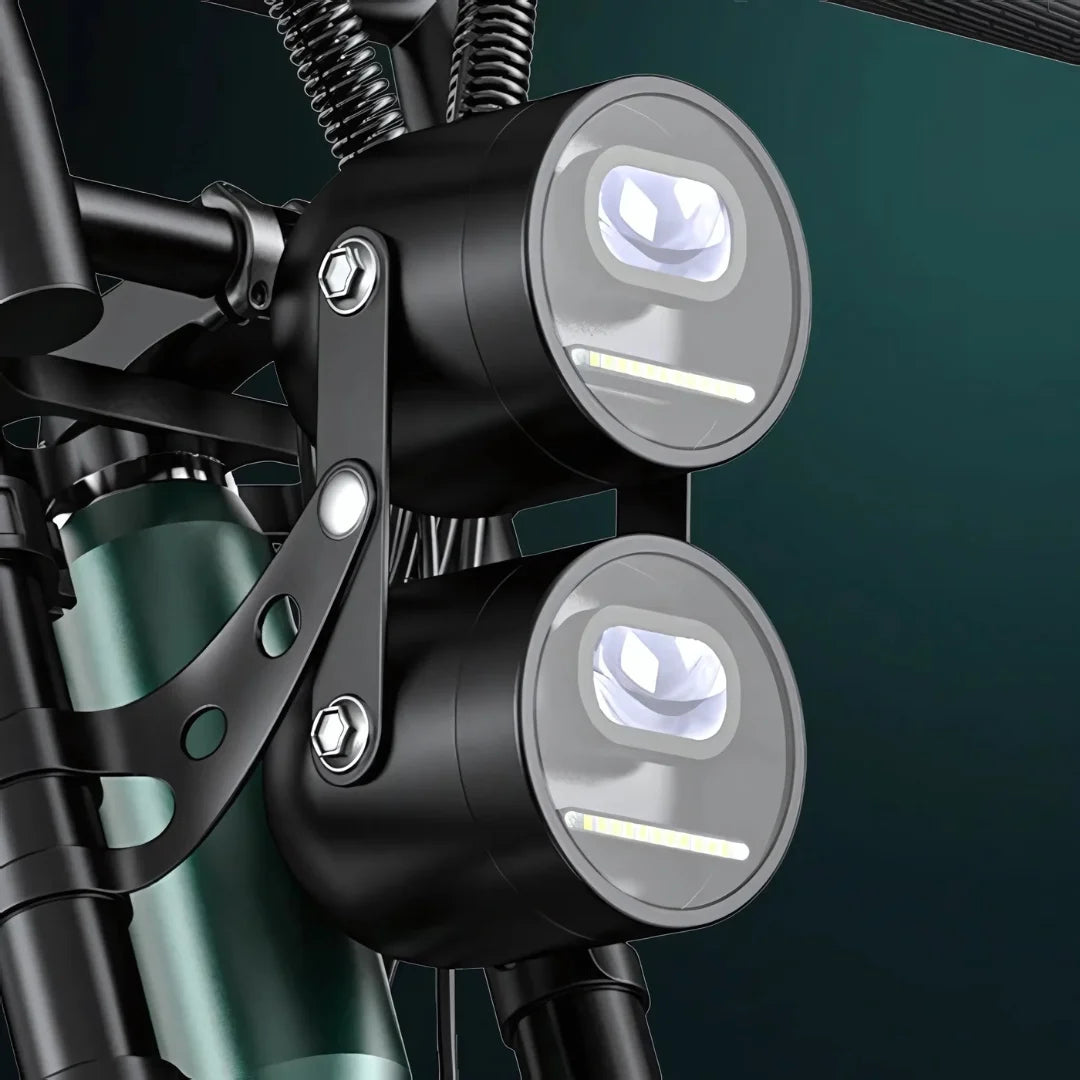Sa svojim robusnim okvirom od aluminijske legure i prepoznatljivim dizajnom, Engwe M20 privlači poglede. Za sigurnu noćnu vožnju, dvostruka prednja LED svjetla i jarko stražnje kočiono svjetlo osiguravaju da ste uvijek vidljivi i sigurni na cesti.