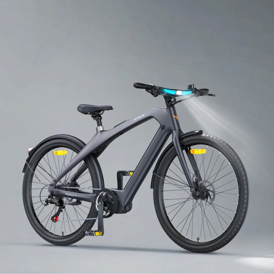 Električni bicikl Engwe MapFour N1 Pro dizajniran je za zahtjevne urbane bicikliste i tehnološke entuzijaste koji cijene vrhunski dizajn, malu težinu i pametne značajke. Sa svojim okvirom od karbonskih vlakana, snažnim središnjim motorom i naprednim sustavom protiv krađe, idealan je izbor za one koji traže elegantan, učinkovit i siguran način prijevoza za svakodnevne obveze i opuštajuće gradske vožnje.
