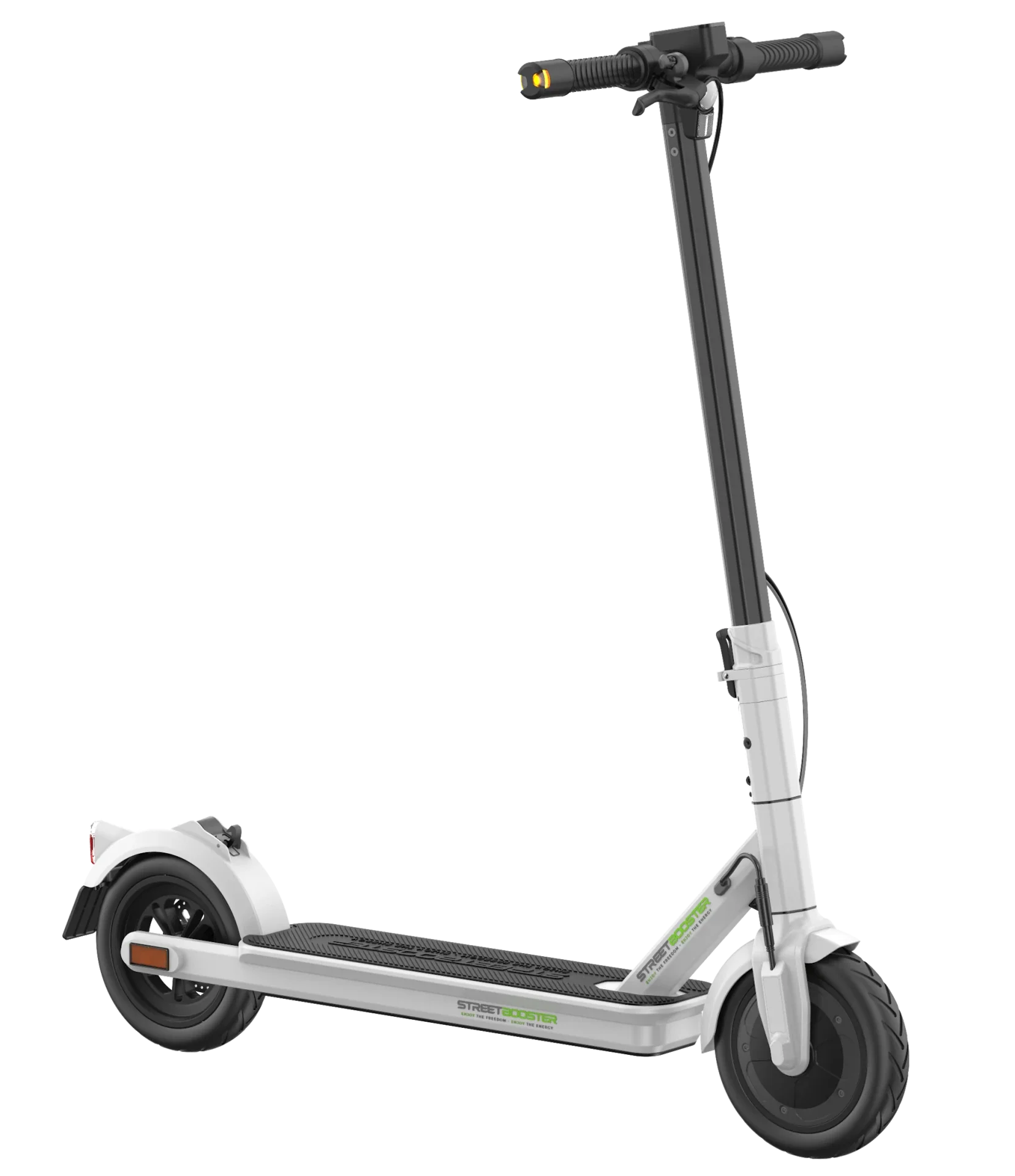 Električni romobil STREETBOOSTER Vega savršen je izbor za gradske vozače i one koji trebaju pouzdano rješenje za transport "posljednjeg kilometra". Zbog svog ultralaganog dizajna (težine samo oko 13,5 kg - 14,2 kg), idealan je za svakoga tko treba često nositi romobil uz stepenice ili ga spremati u prtljažnik automobila. Prikladan je za vozače do 106 kg koji cijene njemačku kvalitetu, sigurnost i inovativna rješenja poput žmigavaca na upravljaču.