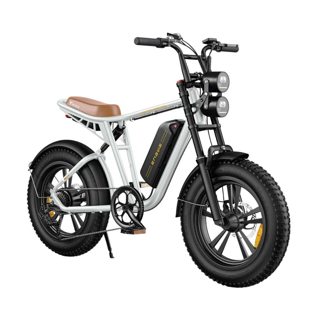 Experience smooth rides with the Engwe M20's streamlined design and dual suspension. The lightweight aluminium alloy frame and fat tires ensure comfortable journeys on any terrain.