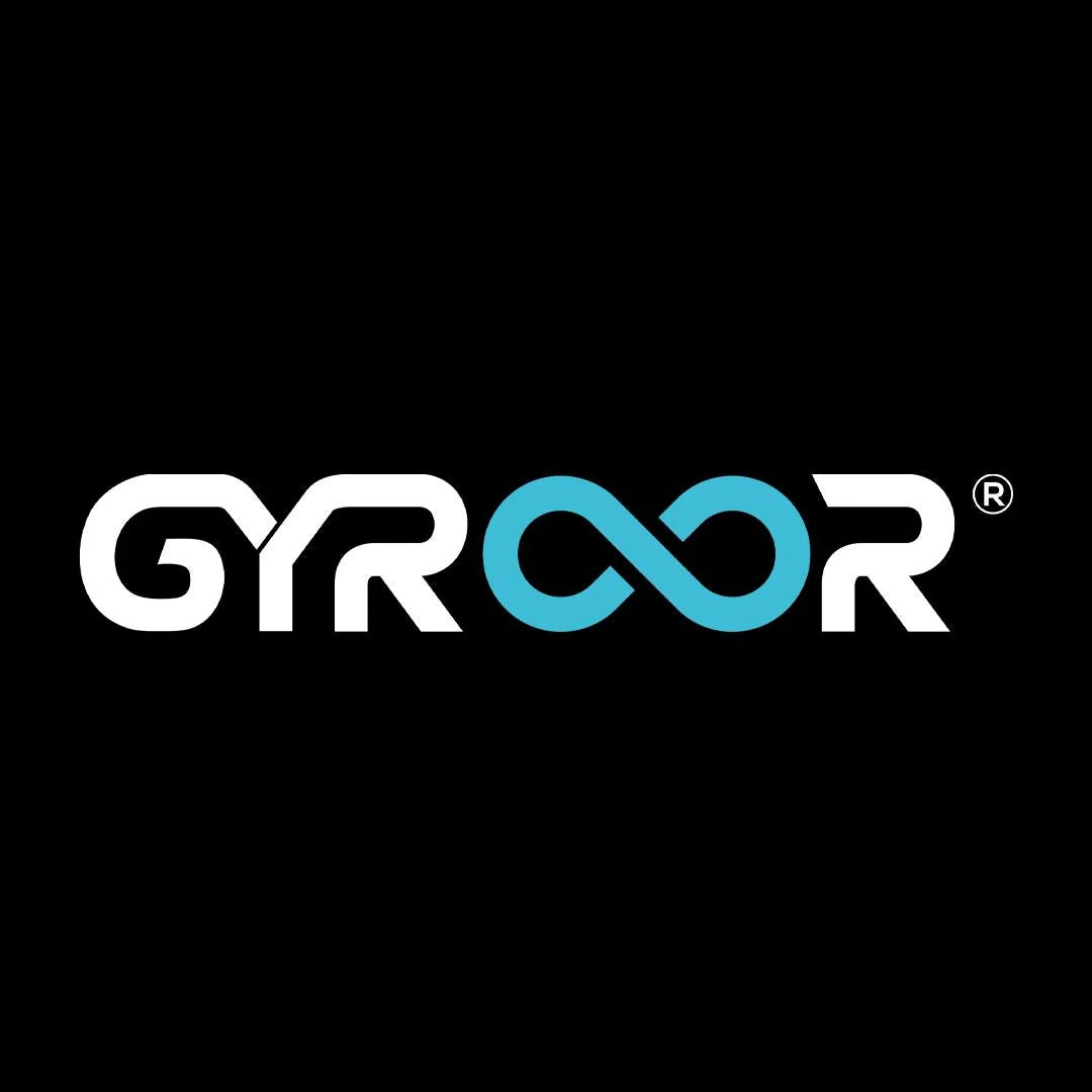 A child rides a Gyroor H30 Max electric scooter surrounded by colorful lights and musical notes
