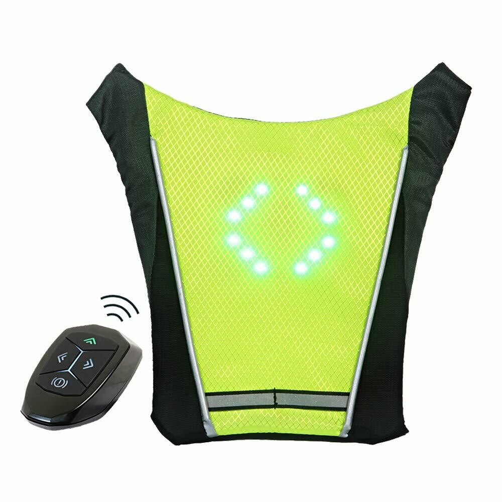 The Turn Signal Safety Vest features built-in LED indicators and a dedicated switch on the back, allowing you to clearly and safely signal your turns to other road users.